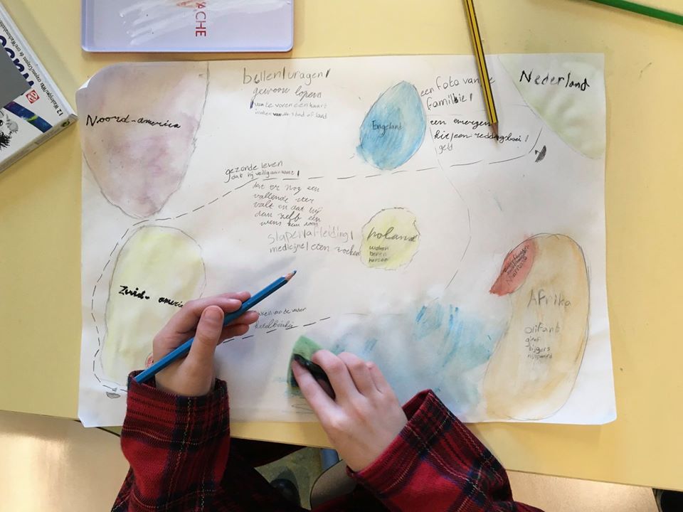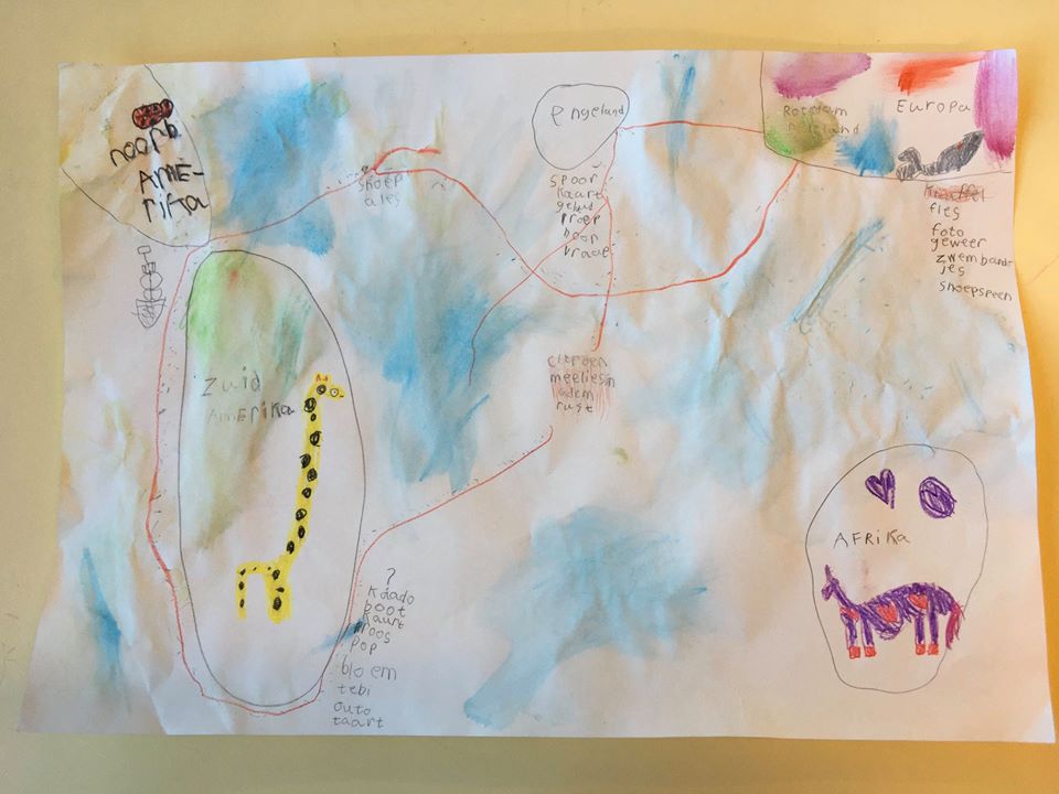 Tijdens de reis beantwoorden de kinderen vragen die ze intekenen (schrijven) op een subjectieve (mentale) kaart. De vragen hebben allemaal te maken met: wat neem jij mee van huis om je elders thuis te voelen? Op deze manier worden de kinderen geprikkeld om na te denken over wat ’thuis’ voor hen betekent. En verder gaat het vooral om de beleving van het maken van een verre reis.